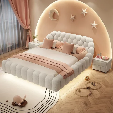 Simple Luxury Bed European Modern Nordic Princess Bed Multifunctional Girls Platform Wood Camas De Casal Lounge Suite Furniture