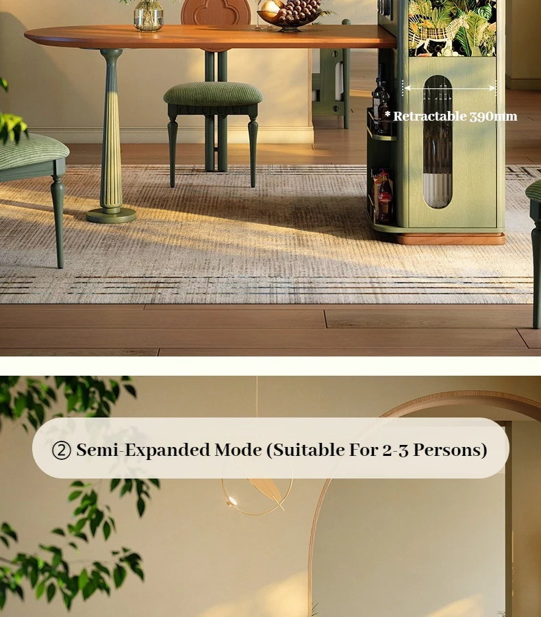Medieval Solid Wood Slim Dining Table Chair Combination Household Small Retractable Square Table Variable Round Furniture