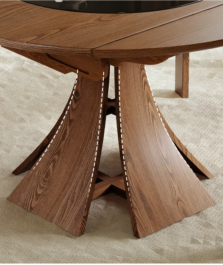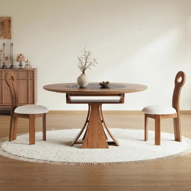 Home Dining Table Medieval Solid Wood Slim Dining Table Chair Combination Household Small Retractable Square Table Variable Round Furniture