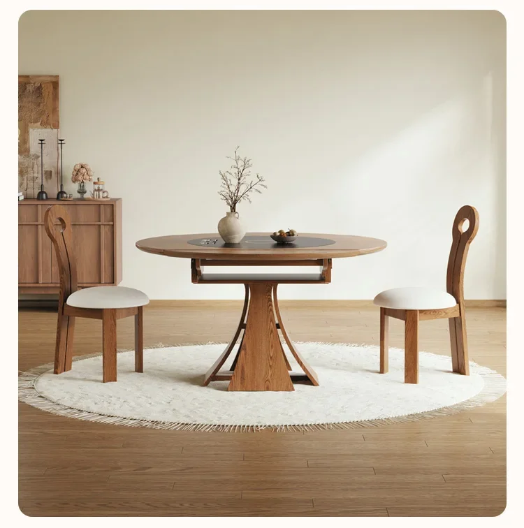 Home Dining Table Medieval Solid Wood Slim Dining Table Chair Combination Household Small Retractable Square Table Variable Round Furniture