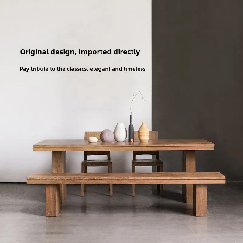 Teak furniture pure solid wood dining table long table log medieval retro square table family