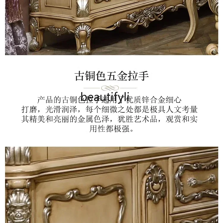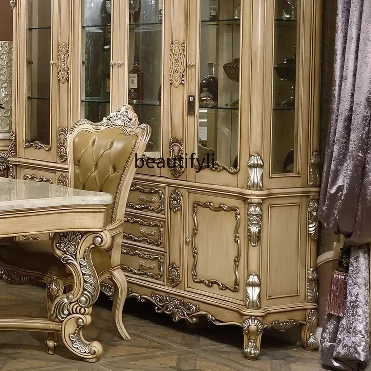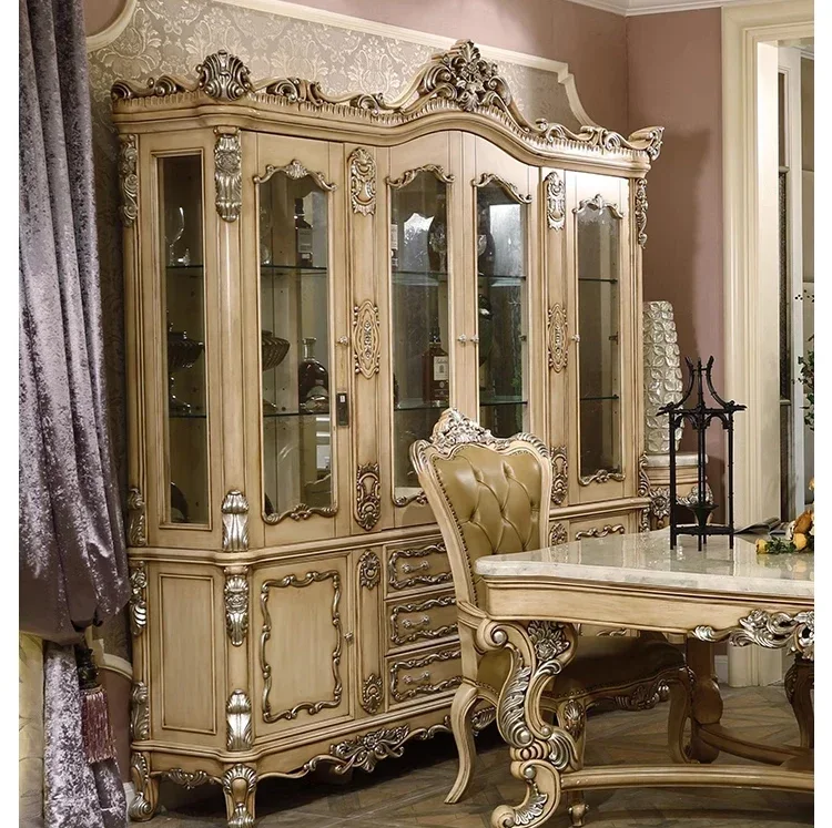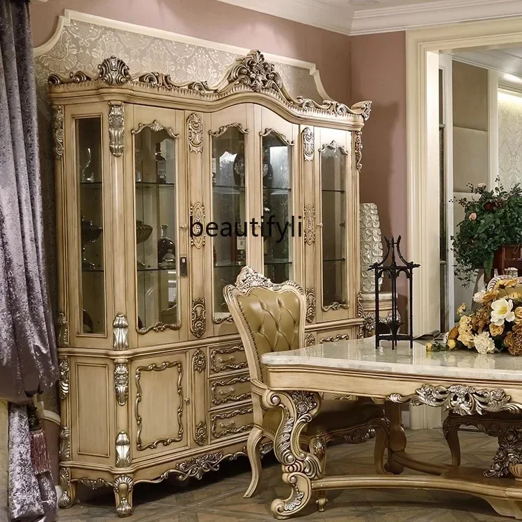 V cqyFrench Solid Wood Glass Wine Cabinet Luxury Four-Door Tea Cupboard Living Room Display Cabinet